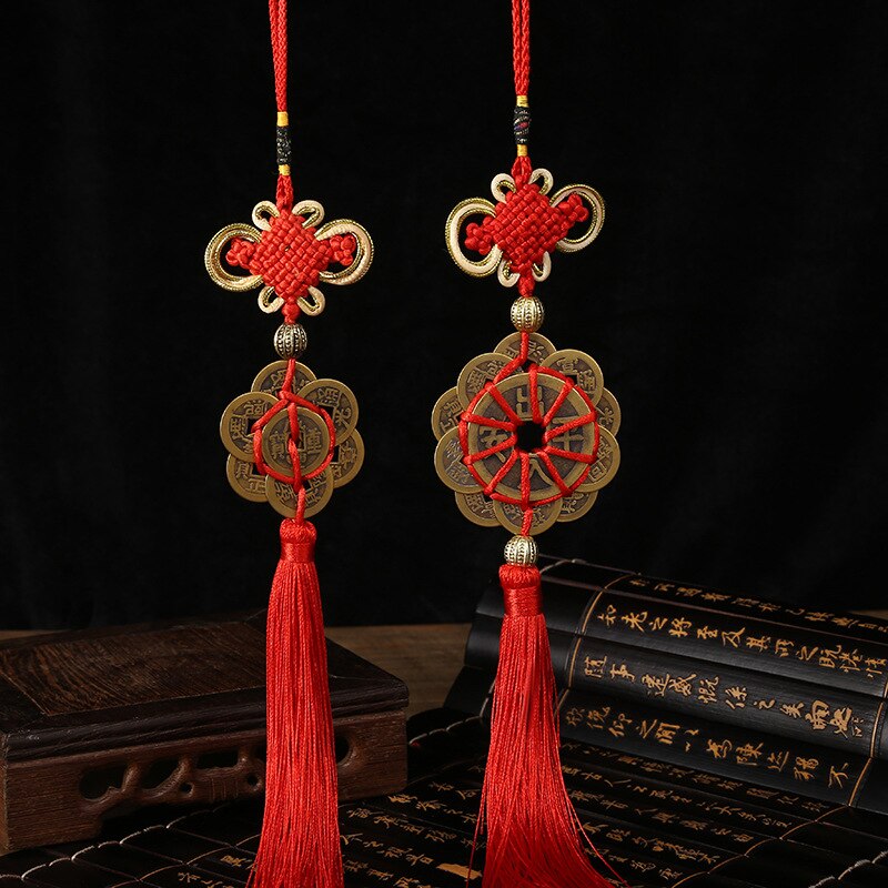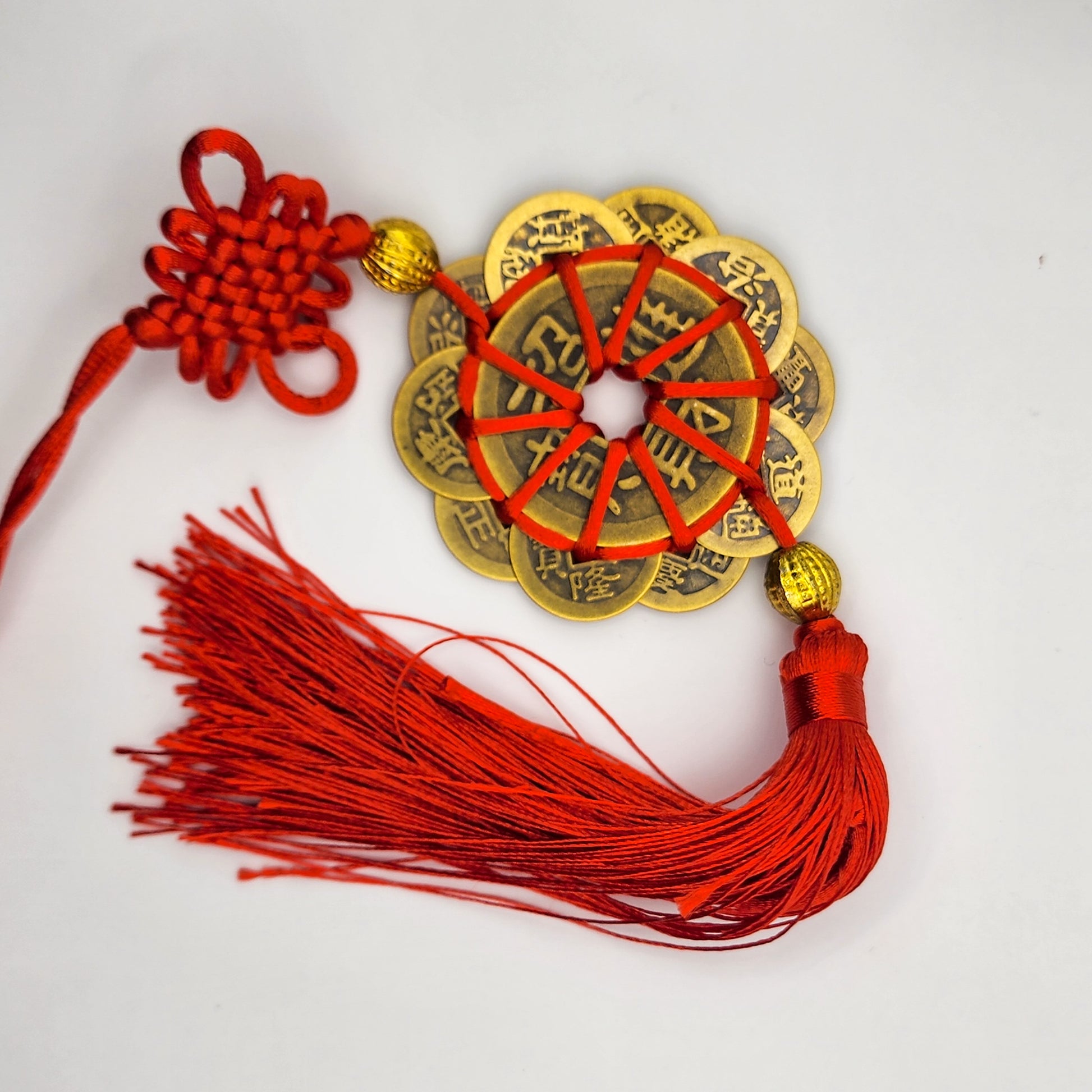 - Design: 2 sets of five emperor coins strung in a circle, with the center coin as the main charm to bring peace and harmony to a home