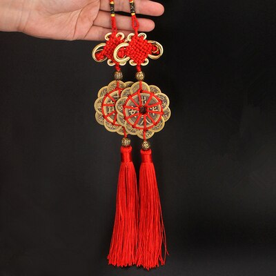 10 Emperor Round Coin Copper Charm with Red Ribbon & Tassel for Hanger Décor